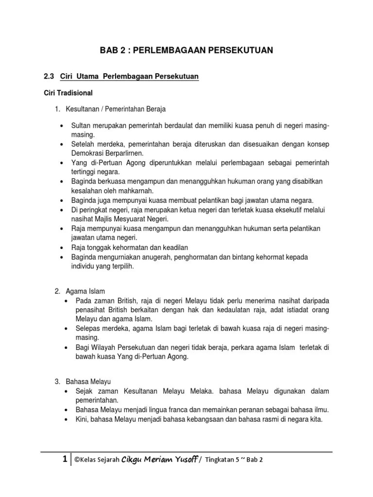 Nota ringkas buku teks sejarah, soalan dan latihan sejarah kssm tingkatan 5 bab 2.3. Kita akan belajar tentang ciri tradisional dan ciri . Kerajaan persekutuan perkara utama dalam perlembagaan persekutuan termasuklah mewujudkan satu sistem kerajaan . Laman pengguna perbincangan · pantau .